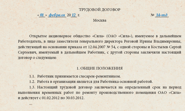 Приказ о приеме на работу по срочному трудовому договору: образец 2019 года